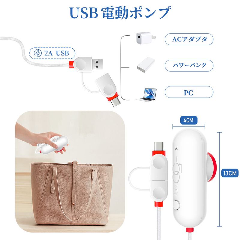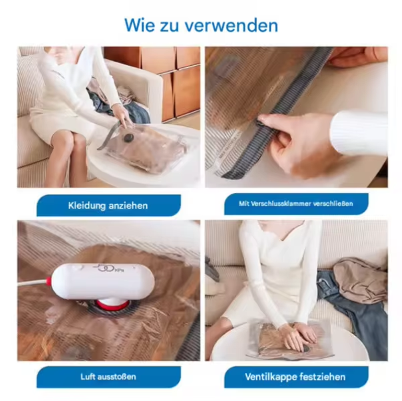 USB-betriebene Vakuumpumpe: Erleben Sie mühelose Kompression überall mit unserer USB-Vakuumpumpe. Schließen Sie sie an Ihr mobiles Netzteil oder Ihren Laptop an und komprimieren Sie unterwegs.