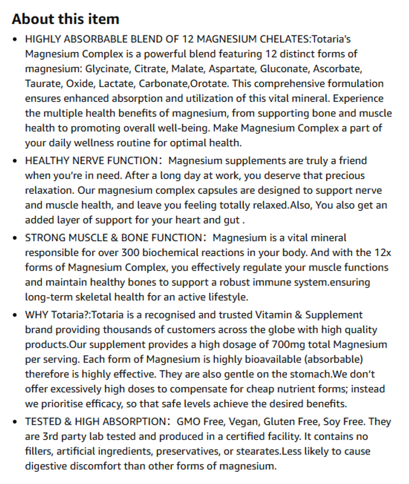 12-in-1 Magnesium Glycinate Complex - 700mg Ultra-Absorbable for Muscle Recovery & Heart Health, Vegan Capsules (120 servings)🌱⏳