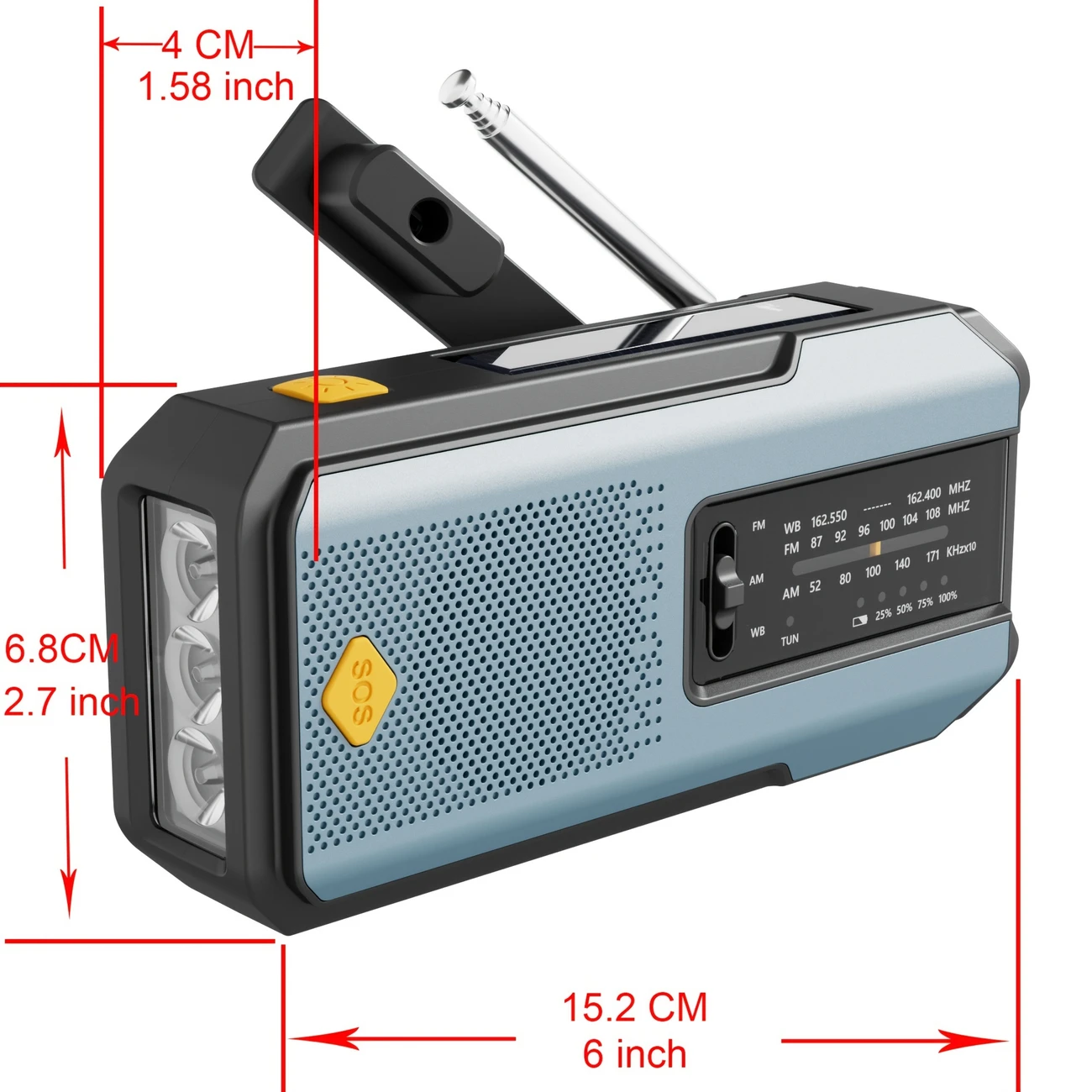 [Home & Outdoor Necessory]Our hand crank radio receives the latest weather information about your located area from 7 NOAA weather bands and portable radio am fm stations, it broadcasts with clear sound. At normal times you could listen to important weather or news updates. Meanwhile, our NOAA weather radio could help you be prepared and get the items you need ready for emergency situations in advance with emergency preparedness item. Earning a critical time for keeping you and your family