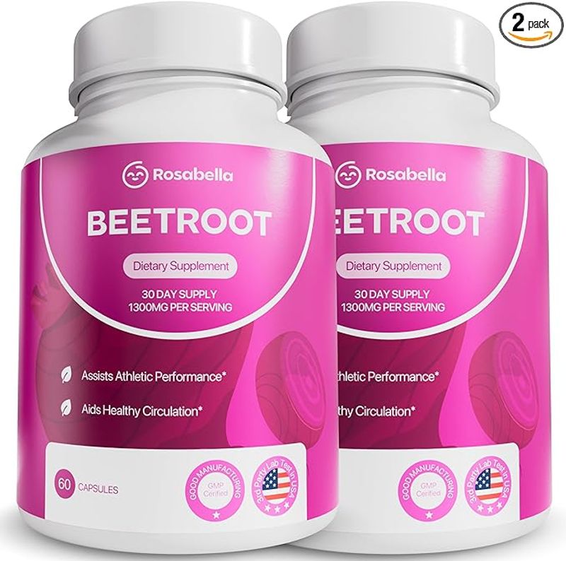 🌿Rosabella Organic Beetroot Capsules 1300mg 120 Count Natural Energy & Endurance Support(2pcs)