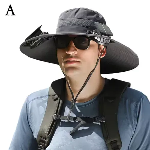 Dual Power Fan Sun Hat:Built-in two 800 mAh battery solar fans, can be outdoor solar charged and usb charged in two ways. Three wind speeds fill up 2 hours, high speed lasts 8 hours, medium speed lasts 16 hours