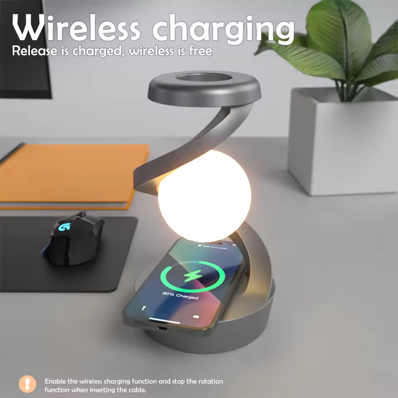 1. When plug in the power supply, the rotation function will be automatically turned off, then Wireless Charging function is available.